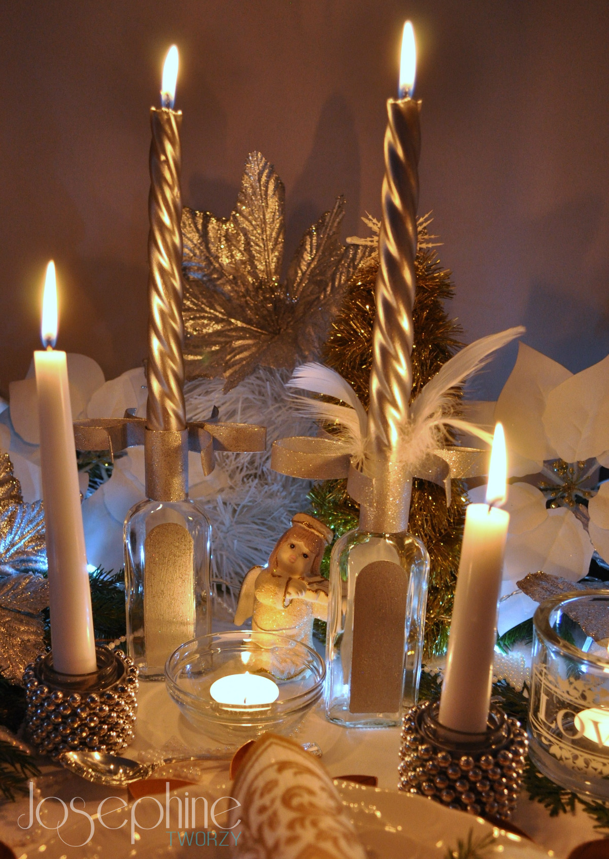 Przechodzimy w końcu do ostatniej fazy świątecznych przygotowań i akcja przenosi się zdecydowanie do kuchni. Cudowne, korzenne zapachy pieczonych ciast i przygotowywanych potraw wprowadzają nas przyjemnie w błogi, wigilijny nastrój i pobudzają nasz apetyt… W moim domu pachnie pierniczkami. Przygotowujemy świąteczny stół. Ale świąteczny stół oprócz pysznych potraw powinien też być wyjątkowo udekorowany, bo Święta Bożego Narodzenia to okres szczególnie ważny w naszej tradycji i moim zdaniem trzeba go celebrować pod każdym względem. W drugiej części świątecznych ozdób z upcyklingu chcę Wam pokazać mój bardzo prosty pomysł na eleganckie świeczniki i obrączkę na serwetę i zainspirować do własnych dekoracji.